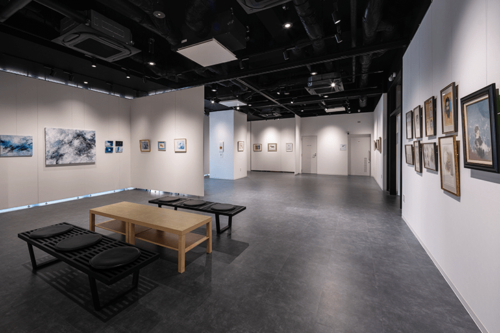 ‚Ü‚½A1ŠKƒMƒƒƒ‰ƒŠ[‚É‚ÍA‰Â“®Ž®‚Ì“Wަƒpƒlƒ‹‚ð‚¢‚©‚ɕǖʂ̂Ýi˜g‚Ȃǂª‚łȂ¢‚悤‚Éj‚ɂł«‚é‚©‚ªd—v‚Å‚ ‚Á‚½‚½‚ßA“Wަ—p‰Â“®ŠÔŽdØ‚è•Ç‚ðÌ—p‚µ‚Ä‚¢‚镨Œ‚ðƒI[ƒi[—l‚²“¯s‚ÌãŠm”F‚µ‚Ä‚¢‚½‚¾‚«A¬Œû‚ɃNƒƒX‚ðŠª‚«ž‚ñ‚ŕǖʂ݂̂ª‰Â“®‚·‚邿‚¤‚ÈÝ‚¦‚É‚µ‚Ü‚µ‚½B