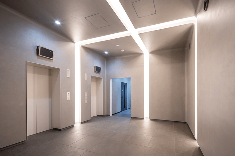 ƒGƒ“ƒgƒ‰ƒ“ƒXƒz[ƒ‹‚ÍA‰š“Ê‚ð‹É—Íí‚¢‚¾ƒzƒƒCƒgƒ{ƒbƒNƒX‚ðƒx[ƒX‚ÉAŽl•û‚ɃNƒƒX‚·‚郉ƒCƒ“ó‚ÌŠÔÚÆ–¾EŽlŽü‚̕ǖʂ𰂩‚ç•‚‚©‚¹‚½“ü‚è‹Ð–؂ɂæ‚èAŽ{Žå—l‚ªÏ‚Ýã‚°‚½—ðŽj‚ÆA–¢—ˆ‚ւ̃Cƒmƒx[ƒVƒ‡ƒ“‚ðŠ´‚¶‚Ä‚¢‚½‚¾‚¯‚邿‚¤‚È‹óŠÔ‚Æ‚µ‚Ü‚µ‚½B